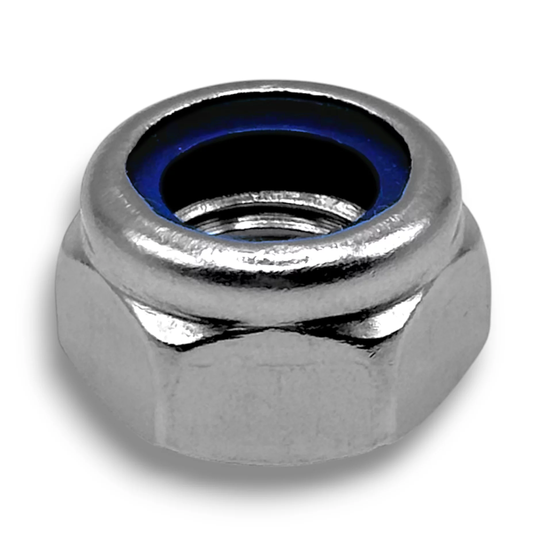 Nakrętka samohamowna (z wkładką) - DIN 985 / ISO 10511Nakrętka wg normy DIN 985 (odpowiednik ISO 10511) to najpopularniejszy typ nakrętki zabezpieczającej na rynku. Charakteryzuje się standardową wysokością (jest niższa od modelu DIN 982) oraz wbudowanym pierścieniem z tworzywa sztucznego (najczęściej poliamidu/nylonu).